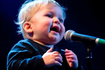 He could barely hold the microphone, his tiny hands grasping it with all the strength he had.