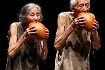 They came onto the stage from different directions. An old man in plaid pajamas, laughing like Christmas morning.