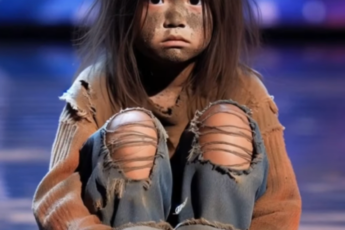 Under the blinding lights of the stage, a tiny figure emerged — barefoot, trembling, and dressed in torn clothes.