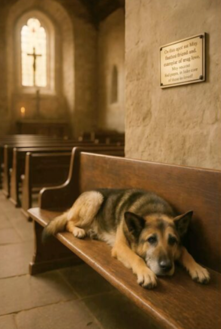 After the service, he approached the dog, knelt down, and gently stroked his furry coat. The dog sighed deeply and looked toward the altar, as if remembering something.