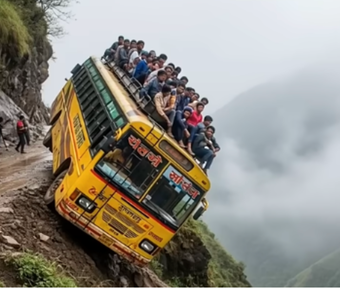 High up in the misty mountains, where narrow roads cling to the edges of steep cliffs, a yellow bus packed with passengers made its way carefully along a treacherous path. The journey was supposed to be routine — a simple route connecting remote villages — but nature had other plans that day. Rain had soaked the roads, turning the dusty trail into a slick, dangerous slope.