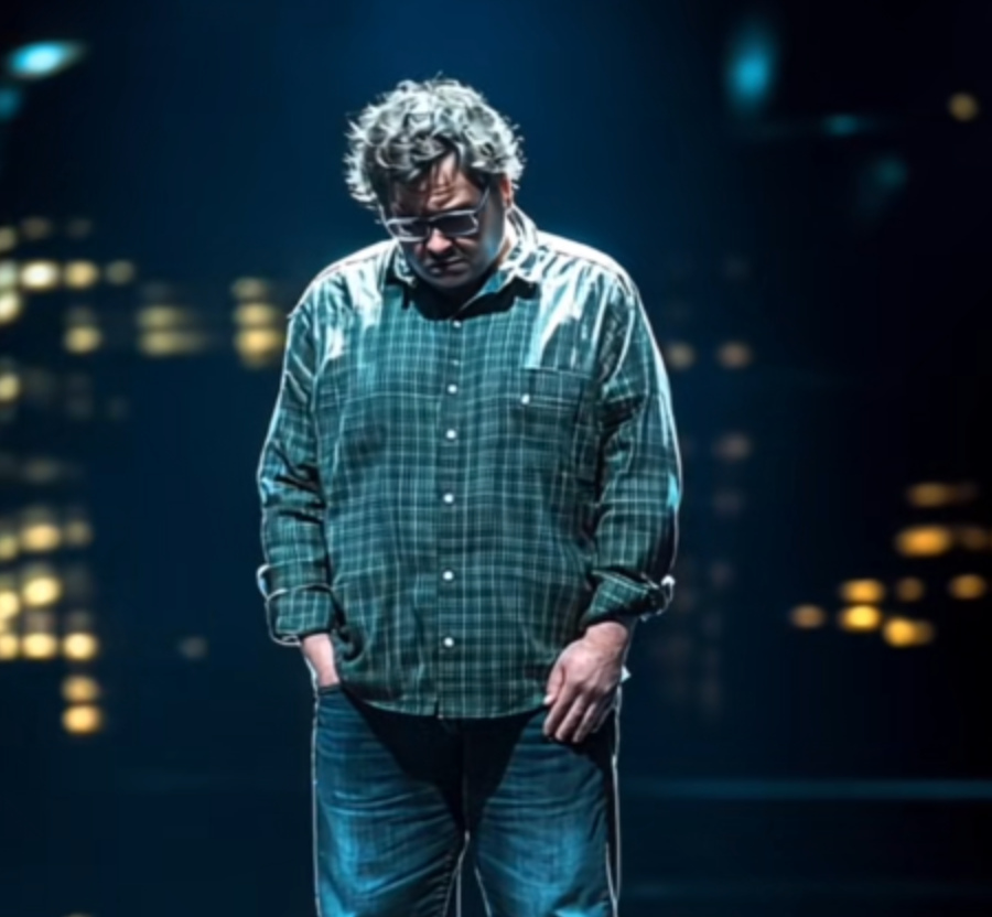 He looked down. Shoulders hunched slightly. Hands in pockets. A plaid shirt, jeans, and the kind of silence that speaks volumes. He didn’t walk out to applause. He didn’t ask for cheers. He just stood there — quiet, tired, and honest.