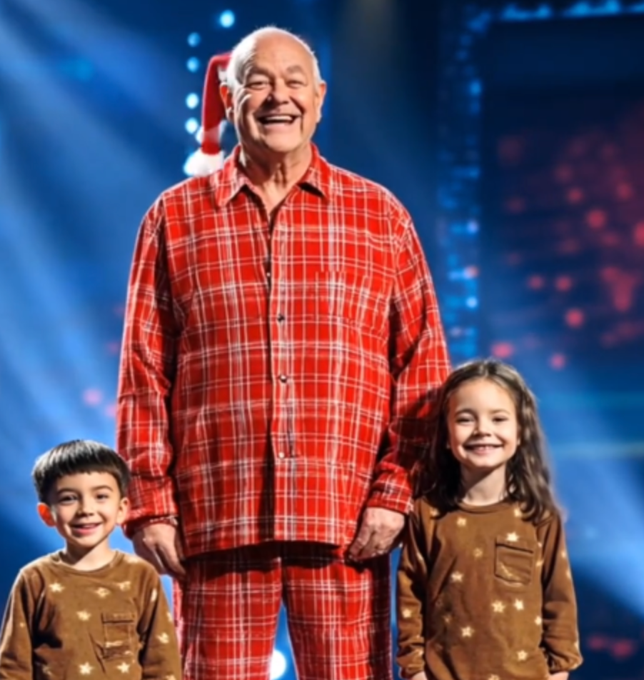 They came onto the stage from different directions. An old man in plaid pajamas, laughing like Christmas morning. A pair of siblings holding hands, dressed in simple gray and blue. A silver-haired woman in a flowing white dress, walking slowly with a child who barely reached her waist. They were strangers in life — but in this moment, they were one family in spirit.