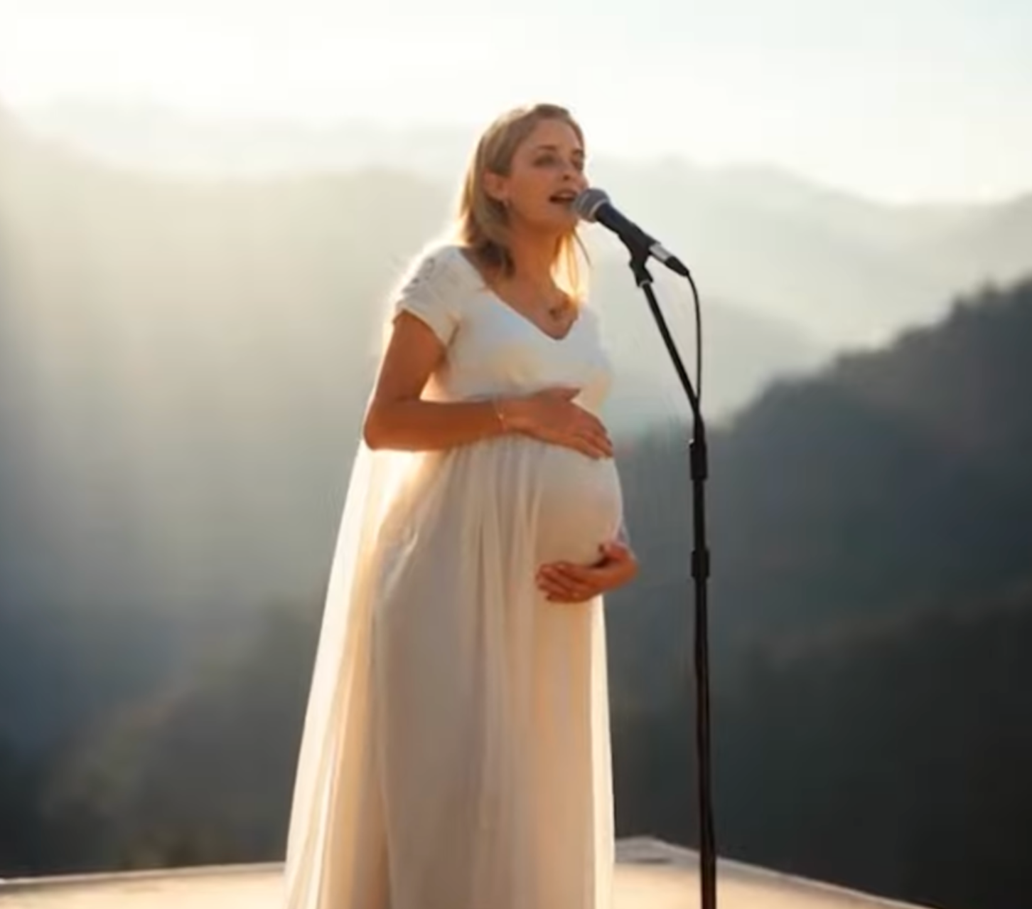 She wore a flowing white gown, simple and elegant. One hand held the microphone. The other cradled her baby bump. And then—without music, without introduction—she sang.