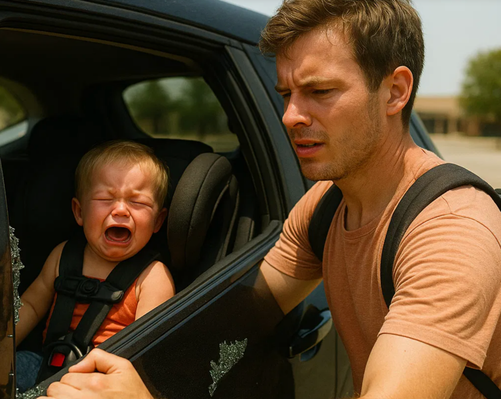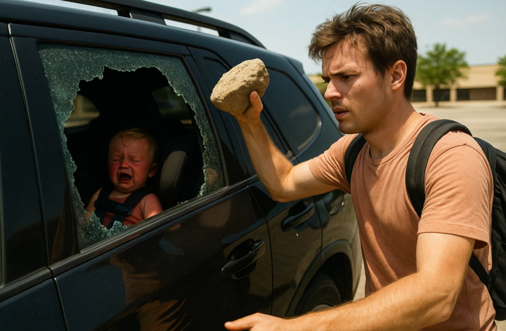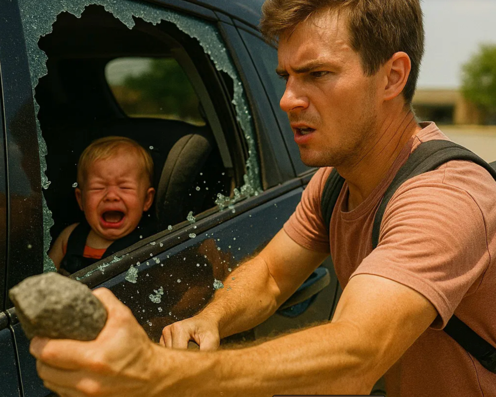 Without a second thought, Lucas grabbed a large landscaping rock from a nearby flowerbed, shouted, “I’m sorry, little guy,” and smashed the rear passenger window. The glass shattered with a loud crack. He reached in, carefully avoiding the shards, and unbuckled the baby from his seat. The child’s skin was hot to the touch—alarming.