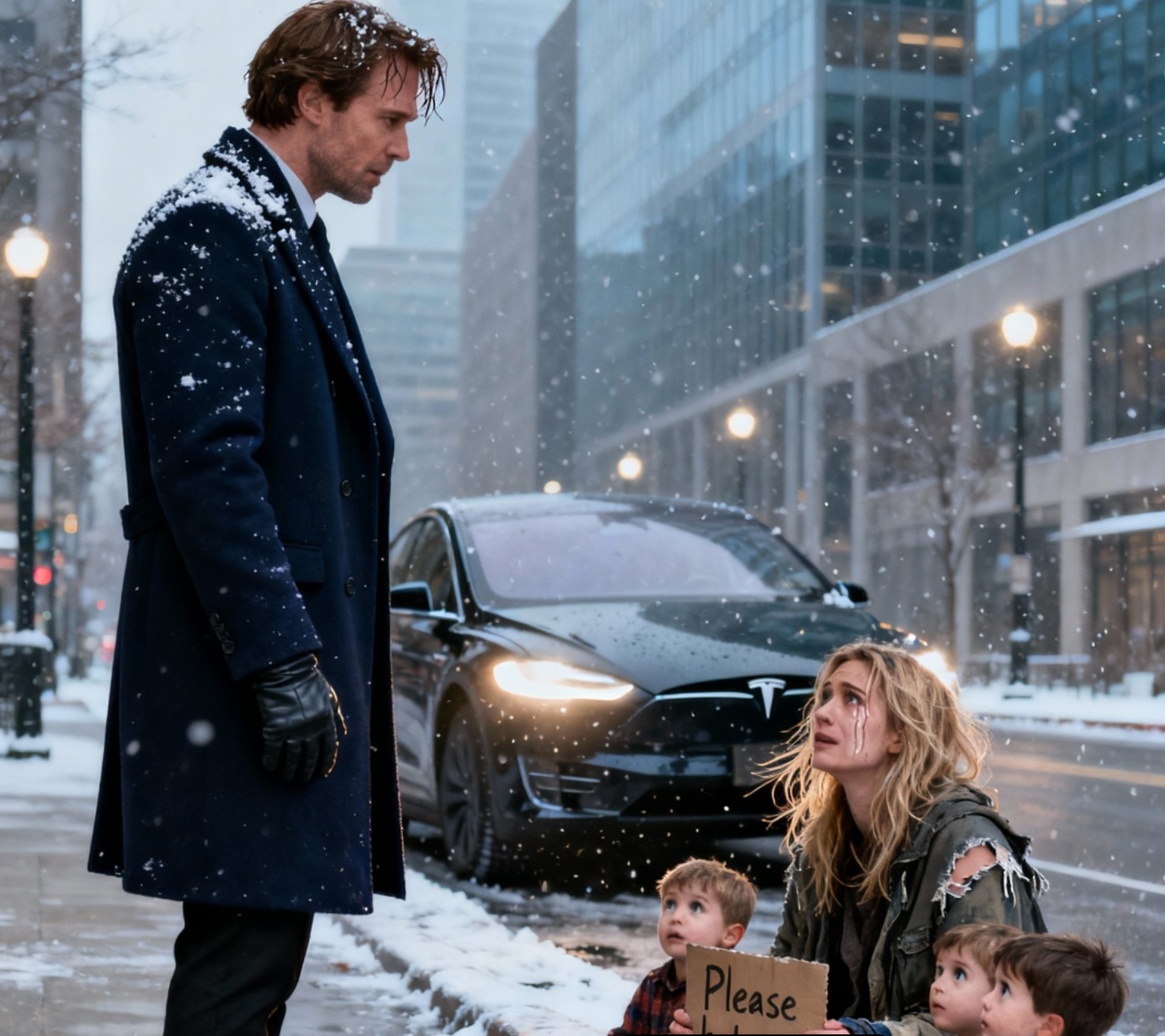Snow was falling heavily when his car stopped at a downtown intersection. Through the frosted window, he saw a young woman sitting on the sidewalk, clutching three small children under a torn blanket.