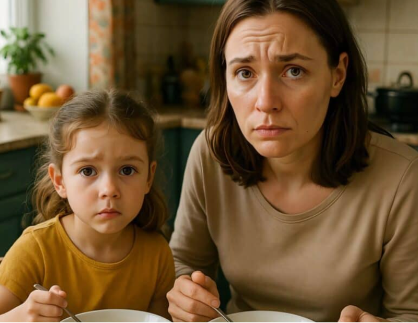 Everything was completely ordinary. I poured the soup, put the plates on the table, sat down across from her — and at that moment her face changed. The smile disappeared, her eyes widened, and her voice became sharp, unusually grown-up: