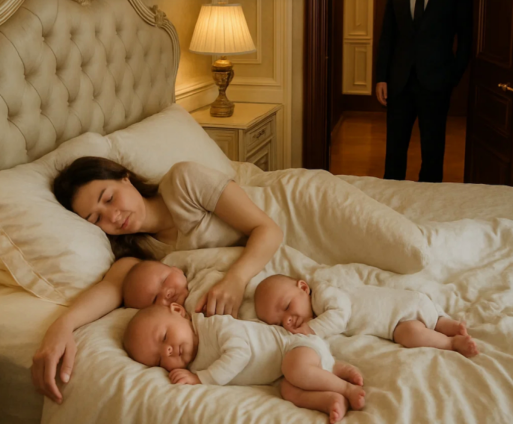 That evening, Alexander returned and froze in the doorway. His mansion was quiet. Grace sat on the sofa, all three boys curled against her, sound asleep. For the first time in years, the house looked peaceful—like a home.