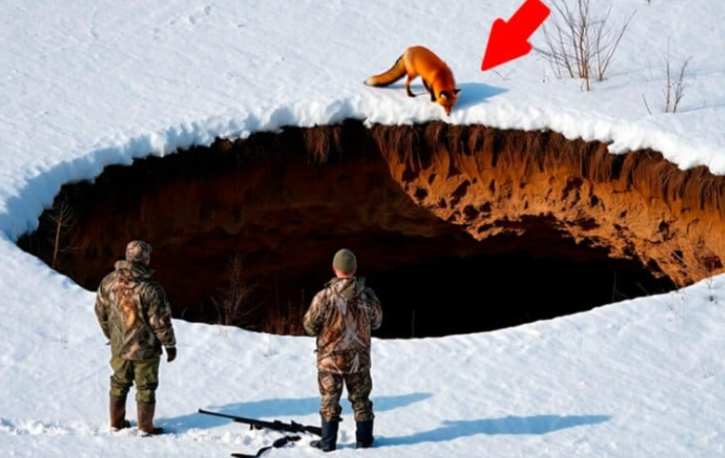 They came closer, and one of the hunters carefully stepped onto the snow and looked down.