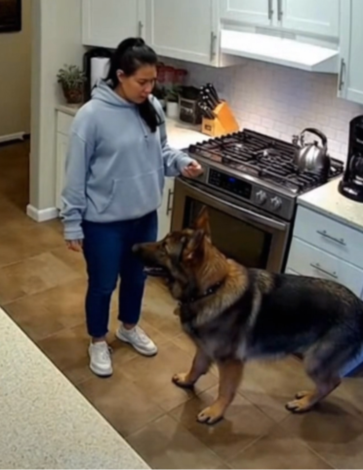 The footage showed Emily entering the kitchen as Bruno lay quietly near the fridge. But within seconds, the dog sprang to his feet—no barking at first, just intense, laser-focused attention. His nose lifted, sniffing desperately. His ears flattened. His body stiffened.