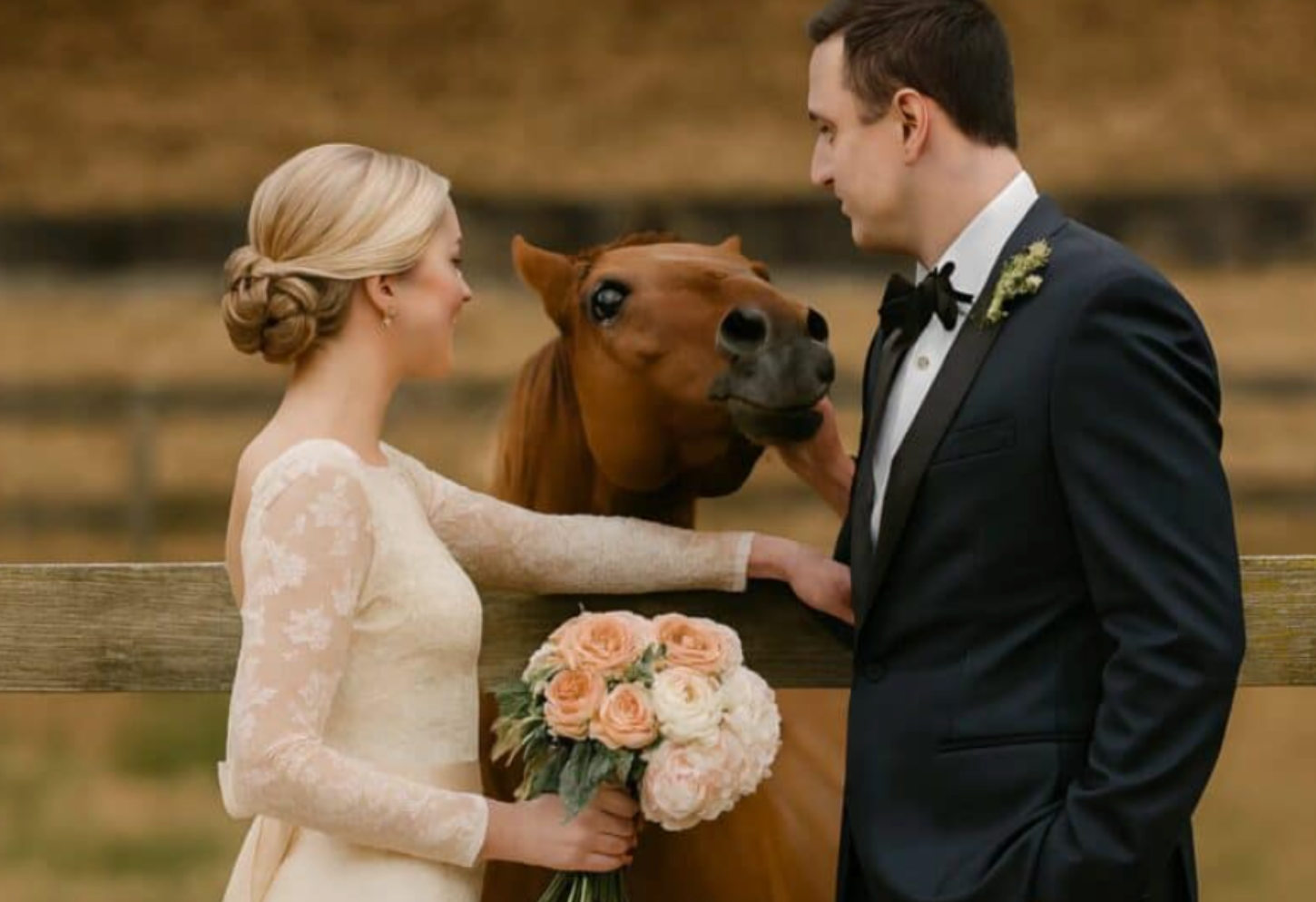 My groom didn’t mind the idea — on the contrary, he said photos with a horse would be very unique and romantic. Everything was perfect: a gentle breeze, the morning light, the photographer giving directions. But as soon as we approached the fence and stood next to the horse, she suddenly began to neigh loudly, stomp, shake her head, and even push my groom in the chest with her muzzle.