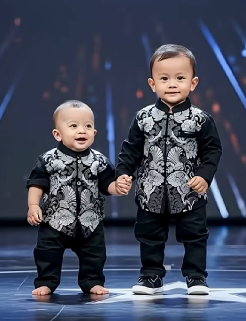 As the music began, Ardi tightened his grip on Raka’s hand. The little one looked up at him, eyes sparkling with trust only babies can have. And then — with no choreography, no coaching, no rehearsals — they began their tiny dance. Two little brothers, moving in perfect, innocent harmony. Raka laughed so suddenly the audience melted like butter. Ardi followed with a proud grin that looked far too mature for his tiny face.