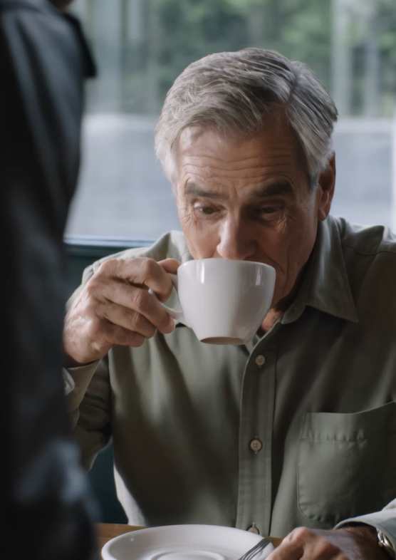 The old man calmly took another sip of his coffee.
