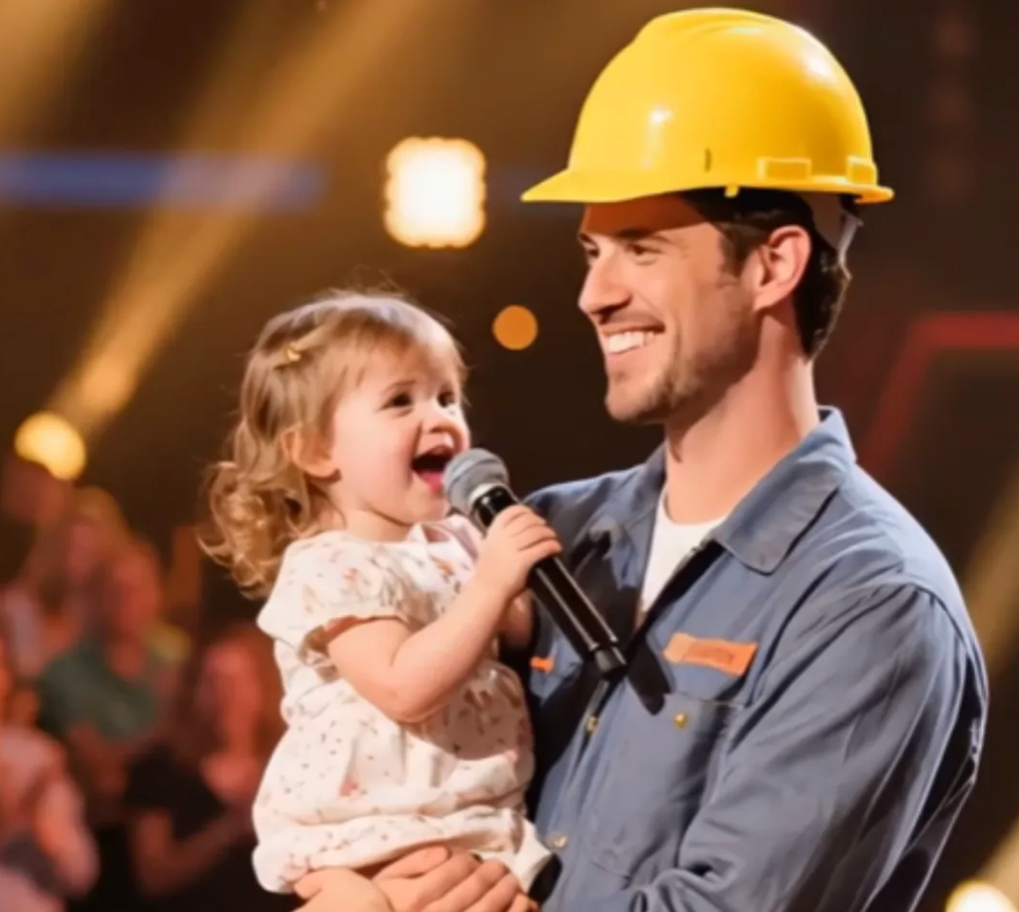 The father, wearing his work uniform and hard hat, looked every bit the devoted parent, standing strong for his daughter. The sight of them together—father and daughter, hand in hand, heart in heart—was enough to bring tears to the eyes of those who witnessed the performance.