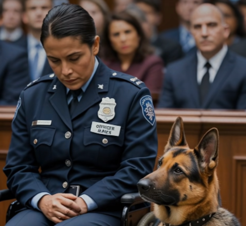 In a tense courtroom packed with journalists, officers, and grieving families, silence filled the air as Officer Marice sat in her wheelchair, her police K-9 companion, Rex, at her side. Everyone’s attention was fixed on the judge, who was moments away from delivering the final verdict. The weight of years of service, loyalty, and sacrifice rested heavily on Marice’s shoulders. To the world, she was a decorated officer—a protector of justice. But today, she stood accused, fighting for her life.